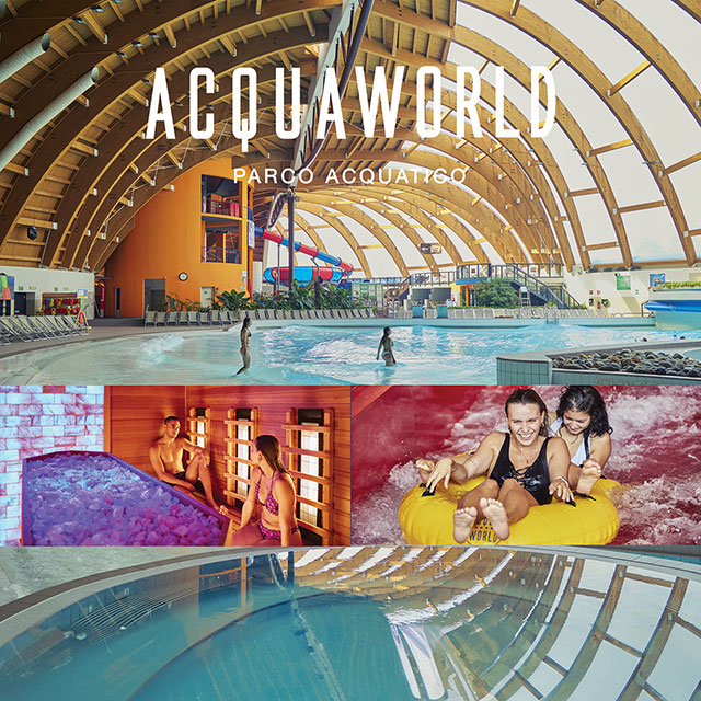 ACQUAWORLD: DIVERTIMENTO E RELAX TUTTO L¿INVERNO, IN ATTESA DELL¿ESTATE! Vivi un inverno all¿insegna del benessere e del divertimento ad Acquaworld, l¿unico parco acquatico coperto in Italia, aperto tutto l¿anno! Con ambienti climatizzati e acqua a 30-32 °C, puoi goderti il relax anche nei mesi più freddi. Con 12 piscine riscaldate, una vasca a onde, oltre 20 scivoli e un¿area bimbi sicura e divertente, il parco offre un¿esperienza unica per tutta la famiglia. E l¿ingresso per i bambini di 80 cm di altezza è gratuito! Cerchi un momento solo per te? L¿area benessere è accessibile dai 18 anni e dispone di 5.000 m² con idromassaggi, bagno turco, sauna, stanza del sale e vasche esterne riscaldate.