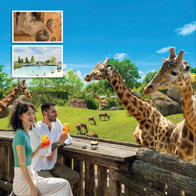 Vivi un¿esperienza immersiva tra Africa ed Asia incontrando lemuri, tartarughe, gibboni, tigri, il panda rosso e tante altre specie animali. Nell¿Anfiteatro di Petra assisti al volo dei rapaci e nel Serengeti scopri tutto su zebre, struzzi, rinoceronti e gazzelle. Ammira leoni e giraffe sorseggiando un drink sulla Savana Terrace. In estate, nuota accanto ai pinguini e agli ippopotami nelle piscine africane e in autunno festeggia al parco Oktoberfest e Halloween. In inverno ti aspetta un Natale Bestiale! Novità: Oasi delle Farfalle. Consegna il tagliando all¿ingresso del parco senza passare dalla biglietteria.