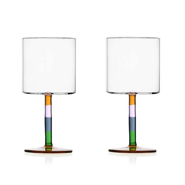 Materiale: vetro borosilicato, fatto a mano e modellato a lume - Dimensioni: H 17 cm, Ø 7 cm cad. circa - Capacità: 25 cl cad. circa - Lavaggio: lavabile in lavastoviglie a basse temperature (consigliati 40 °C)