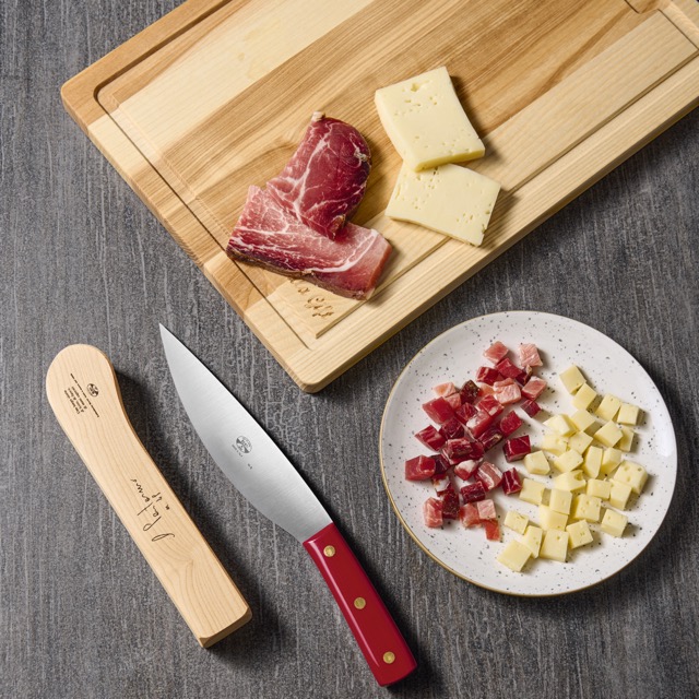 Il coltello Pontormo è la riproduzione di un coltello raffigurato nel quadro "La Cena in Emmaus" del pittore Jacopo Carucci, conosciuto come Pontormo, esposto alla Galleria degli Uffizi di Firenze. Molto versatile, ideale per il taglio dei formaggi, ma anche per la carne e le verdure. La sua lama è inclinata rispetto al manico per agevolare le operazioni di taglio; inoltre, la sua larghezza, permette di raccogliere facilmente il tagliato. Viene proposto unitamente al suo esclusivo ceppo, per poterlo riporre in sicurezza e, al tempo stesso, averlo sempre facilmente a disposizione.