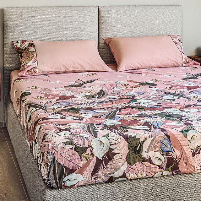 La collezione CALLE trae ispirazione dalle atmosfere esotiche delle opere di Gauguin in Polinesia ed è realizzata in percalle di puro cotone stampato in digitale ad altissima risoluzione. Il modello del lenzuolo lo rende ideale anche come copriletto.