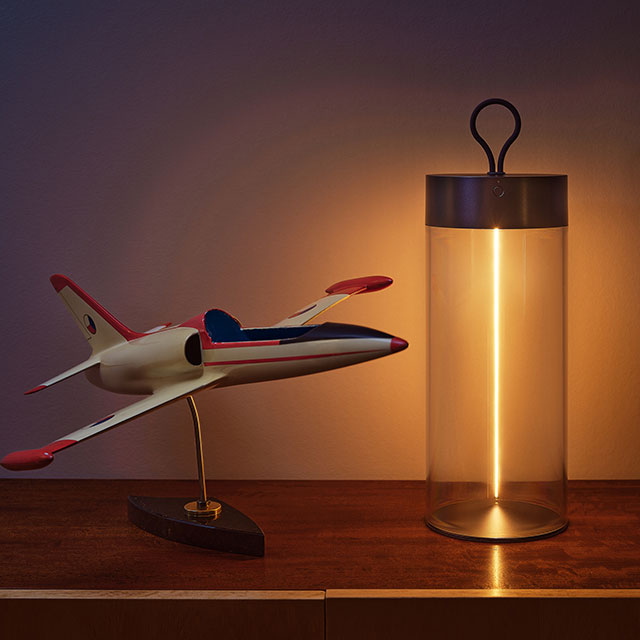 Lampada LED Filament Floor senza fili, utilizzabile sia da pavimento sia da tavolo, caratterizzata da un design unico e distintivo. Il filamento luminoso è dotato di un’estremità magnetica che crea un affascinante effetto fluttuante.