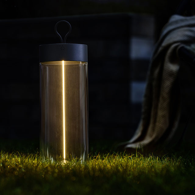 La potente batteria al litio integrata, ricaricabile tramite cavo USB¿C (incluso), garantisce fino a 8 ore di autonomia. L’intensità luminosa è regolabile tramite comando touch su tre livelli: 25%, 50% e 100%.