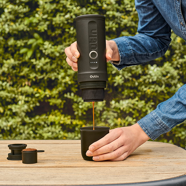 OutIn Nano è la macchina da caffè espresso portatile pensata per chi non rinuncia al piacere di un vero espresso ovunque si trovi. Compatibile con caffè macinato e capsule formato Nespresso® Original e compatibili, raggiunge una temperatura fino a 92 °C in circa 200 secondi ed eroga con una pressione di 20 bar, per una crema ricca e intensa.