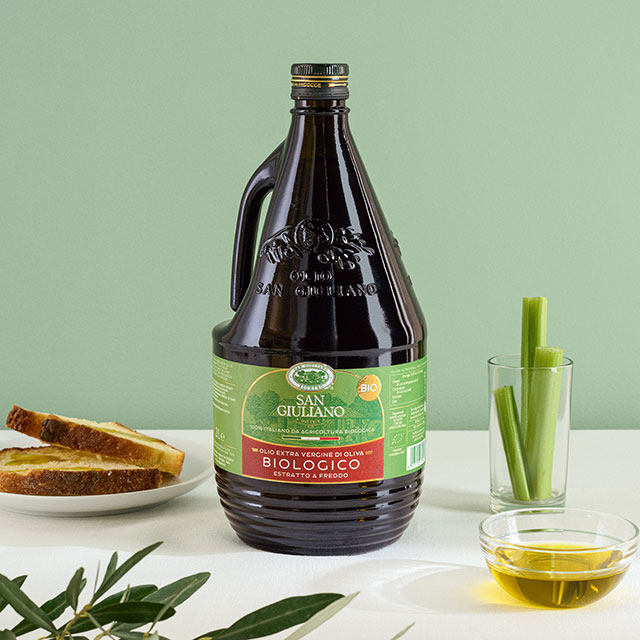 L’olio San Giuliano Bio, 100% italiano, è prodotto nel rispetto del territorio e della biodiversità, senza l’uso di fitofarmaci di sintesi e con metodi agricoli sostenibili. Le olive, accuratamente selezionate, vengono immesse in un ciclo di trasformazione virtuoso, privo di scarti, e lavorate a freddo nel frantoio aziendale 4.0.
