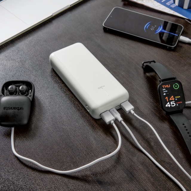 Il Power Bank da 20.000 mAh è dotato di tre porte (due USB-A e una USB-C), tramite cui ricaricare fino a tre dispositivi contemporaneamente. Supporta la tecnologia a ricarica rapida. Ideale per avere energia extra sempre a disposizione.