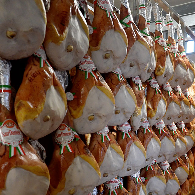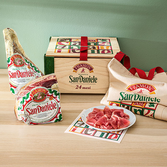 Il Prosciutto di San Daniele DOP nella sua migliore stagionatura: 24 mesi. La selezione accurata della materia prima e l’attenzione meticolosa al processo di lavorazione danno vita a un prosciutto crudo unico, impreziosito dai sentori provenienti dalle Prealpi Carniche, che gli conferiscono un aroma inconfondibile.