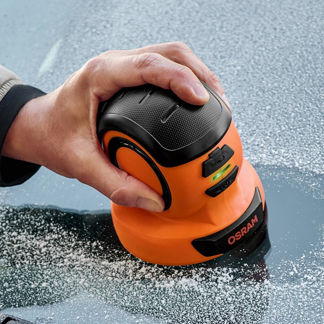 Raschiaghiaccio a batteria, può essere ricaricato in auto tramite il cavo USB in dotazione. Rimuove facilmente il ghiaccio con il minimo sforzo. L'interruttore sul palmo facilita l'utilizzo anche quando si indossano i guanti. Piccolo e leggero, facile da riporre in auto. Il disco rotante in plastica rimuove il ghiaccio dal vetro, basta applicare pressione sulla parte superiore per attivarlo.