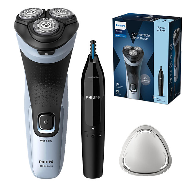 Il rasoio elettrico Philips Serie 3000X Wet & Dry garantisce una rasatura precisa e confortevole. Facile da usare ed efficace in ogni situazione, è dotato di 27 lame PowerCut autoaffilanti, adatte all’utilizzo su pelle bagnata e asciutta, e di un pratico rifinitore a scomparsa.