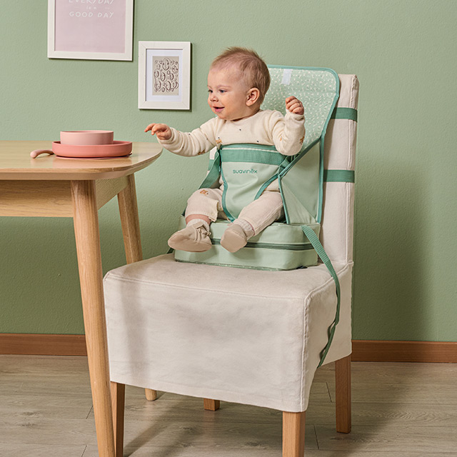 Il rialzo sedia portatile Suavinex è ideale a partire dai 6 mesi, permettendo al bambino di sedere a tavola insieme agli adulti in modo confortevole e sicuro.