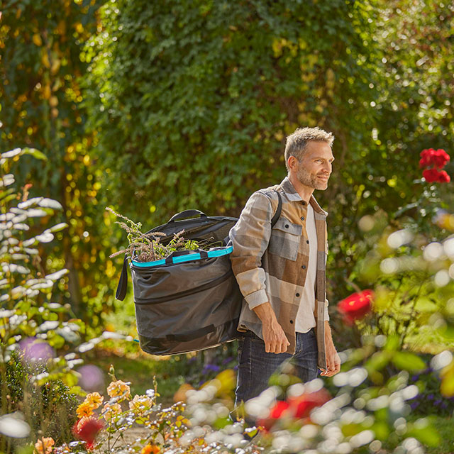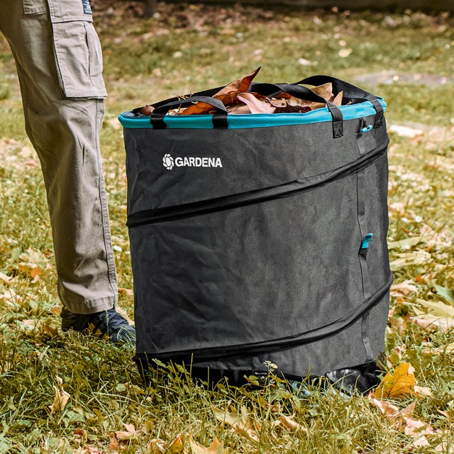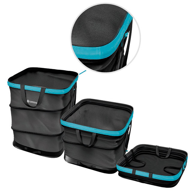 Sacco da giardino pieghevole per la raccolta dei rifiuti fino a 127 litri. Regolabile in altezza, resistente, salvaspazio. Grazie alla forma rettangolare può essere sdraiato a terra per rastrellare i rifiuti in modo ergonomico. La base rinforzata rende il sacco particolarmente robusto e ne garantisce una lunga durata. Ha 3 altezze diverse: completamente aperto, medio o completamente piatto. Inoltre è realizzato per oltre il 70% in plastica riciclata proveniente da rifiuti domestici.