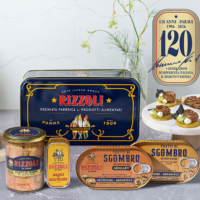 Un viaggio nel gusto lungo oltre un secolo. Per celebrare il 120° anniversario, Rizzoli Emanuelli propone una selezione esclusiva delle sue eccellenze. Il cofanetto racchiude l’iconica scatola di Alici in salsa piccante, simbolo indiscusso del marchio dalla ricetta segreta, due latte di Sgombro Selezione Imperiale, lavorato con cura artigianale, e un maestoso vaso di Tonno da 400 g in grandi tranci, dedicato ai palati più esigenti.