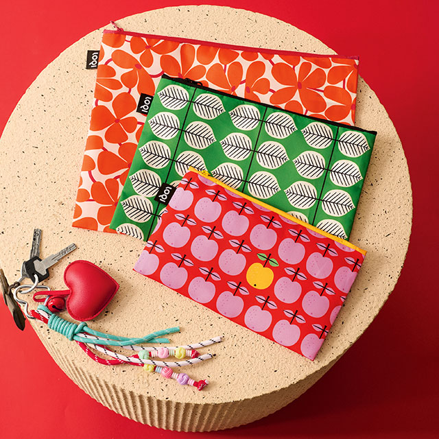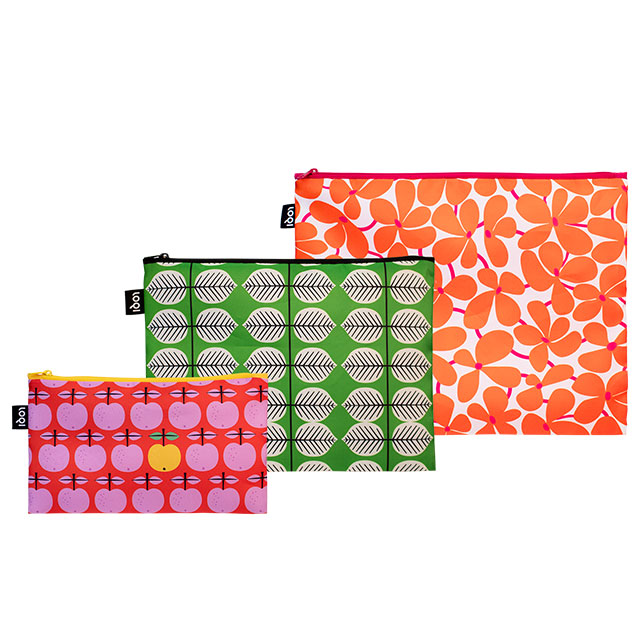 Tutte le cose belle si fanno in tre! Le borse con zip di Loqi offrono un pratico tris di organizer eco¿friendly ideali per riporre cosmetici, penne, telefono, chiavi e molto altro.