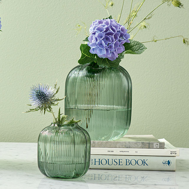 Con la loro armoniosa combinazione di forme fluide e colori di tendenza, questi vasi in vetro donano ad ogni stanza un'atmosfera accogliente e invitante. I vasi Fleur stupiscono per la loro sagoma panciuta e le colorazioni delicate che li rendono un elegante richiamo visivo. Questo vaso è l'ideale per creare bellissime composizioni floreali e un'atmosfera gradevole.
