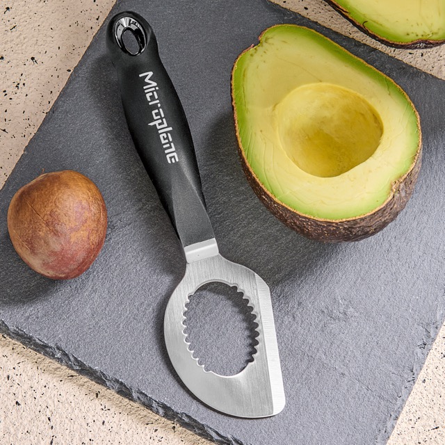 Accessorio 3 in 1 indispensabile per tagliare, denocciolare ed estrarre la polpa dell'avocado in modo sicuro e veloce. La lama in acciaio inox taglia facilmente il frutto e consente di ottenere listarelle o cubetti perfetti. Il foro centrale rimuove il nocciolo con un solo gesto, mentre il cucchiaio integrato permette di prelevare la polpa senza sprechi. Impugnatura ergonomica e soft touch.