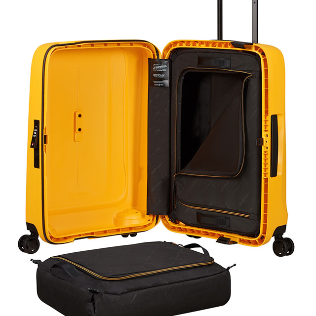 Essens è la nuova compagna di viaggio pensata per offrire grande capienza e un sistema innovativo e intuitivo per la preparazione del bagaglio. Realizzata con almeno il 70% in peso del guscio esterno in polipropilene riciclato post-consumo, unisce sostenibilità e resistenza.