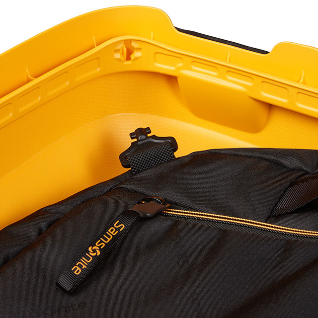 Dotata di un sistema di chiusura a tre punti con funzione TSA008, risulta pratica grazie alla maniglia superiore e laterale, al traino bitubo e alle quattro ruote a sospensione. All’interno è organizzata con due ampi organizer regolabili in altezza, amovibili e lavabili a mano, completi di maniglie per il trasporto.
