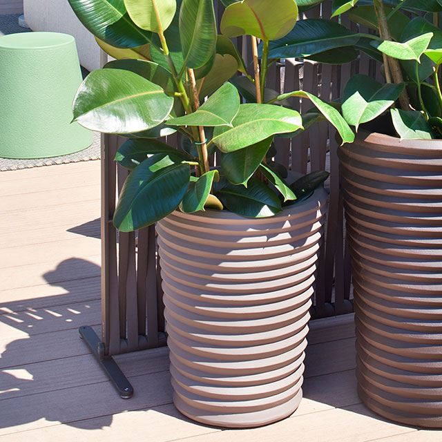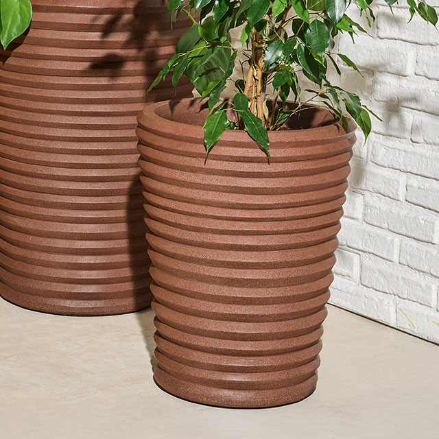 S-Pot è un vaso dalla forma conica e dalla superficie sfaccettata, arricchita da eleganti striature orizzontali. Realizzato in polietilene riciclato con tecnologia di stampaggio rotazionale, è una scelta sostenibile, resistente e adatta a diversi contesti indoor e outdoor.