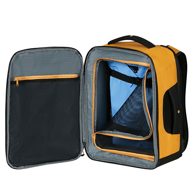 Lo zaino Ecodiver è progettato con dimensioni adatte al bagaglio a mano delle principali compagnie aeree low-cost. Pensato per offrire la massima capienza, è dotato di un comparto principale con pratiche cinghie, di un comparto protetto per laptop e tablet e di tasche multiple per un’organizzazione efficiente.