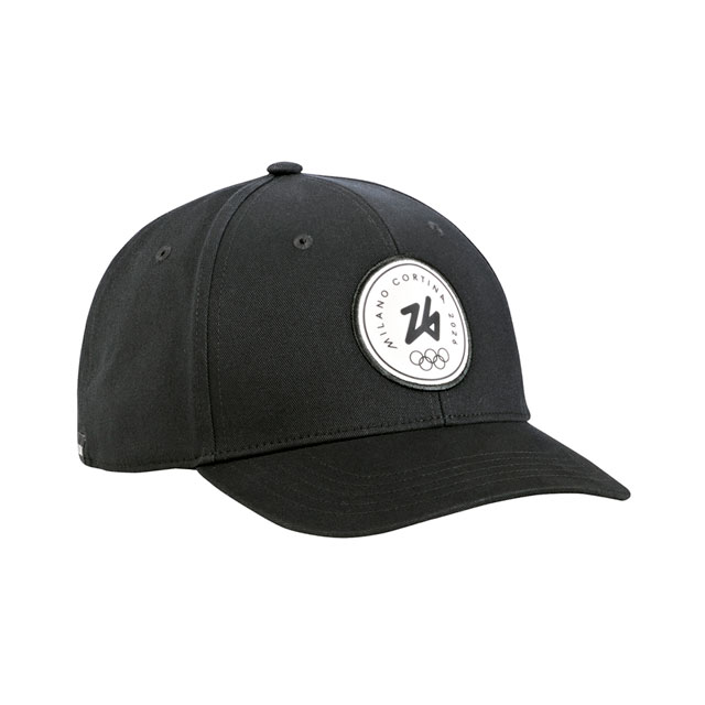 Un cappellino in cotone con patch Milano Cortina 2026, capace di coniugare funzionalità e stile, con fascia tergisudore interna in poliestere, occhielli ricamati e chiusura regolabile.